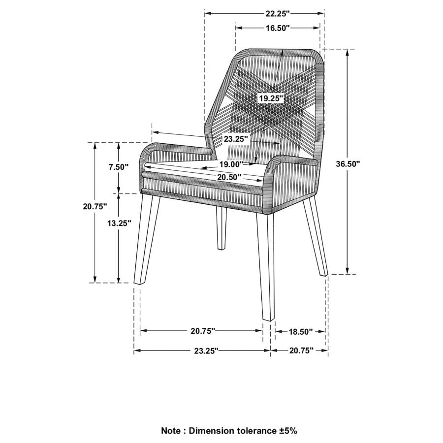 * Hand-crafted rope loomed chairs with an aluminum frame and mahogany wood legs